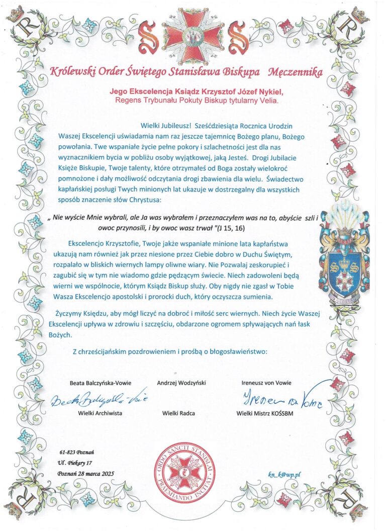 Jesteśmy kontynuacją Orderu założonego w 1765 roku przez Króla Stanisława Augusta Poniatowskiego.
